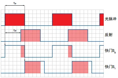 记光的速度为c,tp为光脉冲的持续时间, S0表示较早的快门收集的电荷, S1表示延迟的快门收集的电荷,那么距离d可以由如下公式计算: