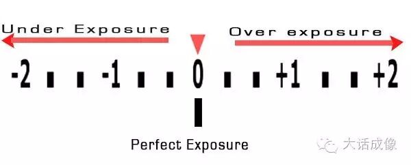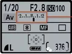 这张图是单反相机的曝光表,我们拍照时,半按快门,相机就会进行测光,中间红色的小箭头会指示出相机当前的曝光,我们让小箭头落在0处,一般的情况,这就是合适的曝光。