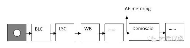 这是一个ISP的基本流程图,在demosaic前的位置,或者demosaic后紧挨着的位置,会计算出图像的亮度均值。