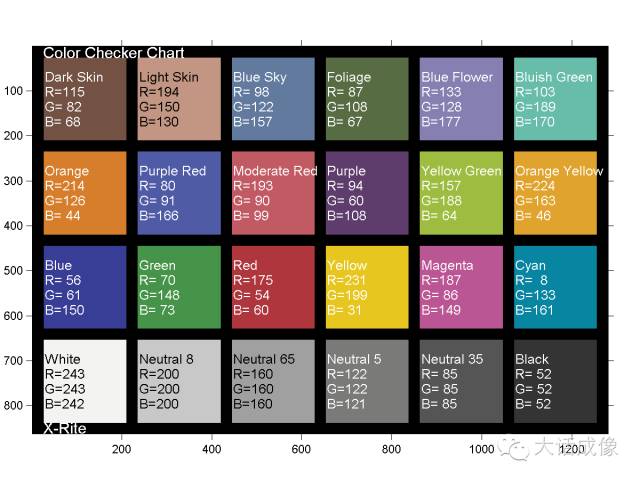 那么按照sRGB色彩空间,Gamma = 2.2,如果拍一个color checker,成像的目标就是把图像处理成这样的数值: