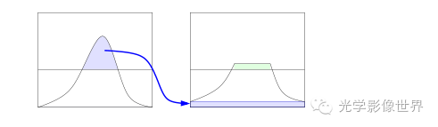 CLAHE,对比度受限的自适应直方图均衡算法就能够有效的限制噪声放大的情形。下图表示的就是局部矩形领域内的灰度直方图,由于对比度放大的程度与像素点的概率分布直方图的曲线斜度成比例,所以为了限制对比度,将大于一定阈值的部分平均分配到直方图的其他地方,如右图所示,这样的话,通过限制CDF(累积分布函数)的斜率来一定程度限制对比度。